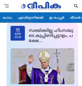 “ലെയോ പാപ്പ ക്രൈസ്‌തവർക്കുവേ ണ്ടി മാത്രമല്ല തലയുയർത്തിയത്; എ ല്ലാവർക്കും സമാധാനത്തോടെ ജീവി ക്കാൻവേണ്ടിയാണ്. മനുഷ്യവംശത്തി ന്റെ നിലനിൽപ്പിനുവേണ്ടിയാണ്. അ തിനു കേരളത്തിലും പ്രസക്തിയുണ്ട്. എല്ലാവർക്കും വേണ്ടിയാണെന്നു പറ ഞ്ഞു പാസാക്കുന്ന നിയമങ്ങൾ ന്യൂന പക്ഷങ്ങളെ മാത്രം വേട്ടയാടിയ ഉദാഹ രണങ്ങൾ നിലനിൽക്കേ, എഫ്സിആ ർഎയെക്കുറിച്ചു മിണ്ടിപ്പോകരുതെന്ന ഭീഷണിയുമായി ഏത് രാഷ്ട്രീയാവസ രവാദി മുണ്ടുമടക്കിക്കുത്തി വന്നാലും ഇതുതന്നെ നിലപാട്. ഇനിയും പറയേ ണ്ടിവരും. രാഷ്ട്രീയം ദുഷിപ്പുകാർ തട്ടി പ്പറിക്കരുത്.”