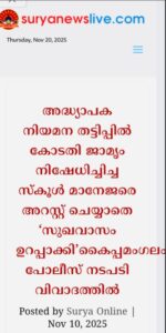 അദ്ധ്യാപക നിയമന വാർത്ത ആദ്യം റിപ്പോർട്ട് ചെയ്തത് സൂര്യയിൽ