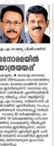 കഴിഞ്ഞ 35 വർഷമായി മലയാള മനോരമയിൽ ആർട്ടിസ്റ്റായിരുന്നു. ഈ മേഖലയിലെ ഡിജിറ്റൽ മാറ്റങ്ങൾക്ക് അദ്ദേഹം കൂട്ടുനിന്നു . മനോരമ സൺഡെ സപ്ലിമെൻ്റിൽ ഇല്യുസ്ട്രേഷൻ, ഗ്രാഫിക്സ് ചിത്രീകരണങ്ങൾ, തലക്കെട്ടുകൾ തുടങ്ങിയവ ചെയ്തിരുന്നു.