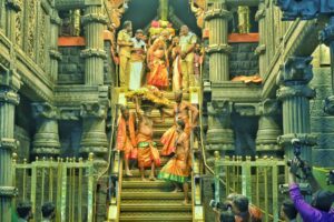 രണ്ട് പെട്ടികള് മാളികപ്പുറത്തേയ്ക്കാണ് കൊണ്ടു പോയത്. പന്തളം രാജപ്രതിനിധി കളഭാഭിഷേകത്തിന് നല്കിയ സ്വര്ണകുടം ഉള്പ്പെടെ രണ്ടാം പെട്ടിയിലാണ്. ഈ പെട്ടിയും പതിനെട്ടാം പടിയിലൂടെയാണ് താഴെ എത്തിച്ചത്. തലപ്പാറമല, ഉടുമ്പാറമലയുടെ കൊടികള്, അയ്യപ്പന്റെ തിടമ്പ്, നെറ്റിപ്പട്ടം തുടങ്ങിയവ മൂന്നാം പെട്ടിയിലും. വിളക്കെഴുന്നള്ളിപ്പിന് ഇവയാണ് ഉപയോഗിച്ചത്. കൊല്ലമുഴി- നിലയ്ക്കല് വഴിയുള്ള മടക്ക യാത്രയില് ളാഹ വനം വകുപ്പ് ഓഫീസിന് സമീപമുളള സത്രത്തില് വിശ്രമിക്കും. ജനുവരി 21 ന് പെരുന്നാട് കക്കാട് കോയിക്കല് ക്ഷേത്രത്തിലെ അയ്യപ്പ വിഗ്രഹത്തില് തിരുവാഭരണം ചാര്ത്തി ദര്ശനമുണ്ട്. ജനുവരി 22 ആറന്മുള കൊട്ടാരത്തില് വിശ്രമം. ഇവിടെ പെട്ടി തുറന്ന് കാണിക്കുന്ന തിരുവാഭരണം ദര്ശിക്കാന് അവസരമുണ്ട്. തുടര്ന്ന് പന്തളം സ്രാമ്പിക്കല് കൊട്ടാരത്തിലേക്ക് യാത്ര തിരിക്കും. ജനുവരി 23 ന് കൊട്ടാരത്തിലെത്തും.